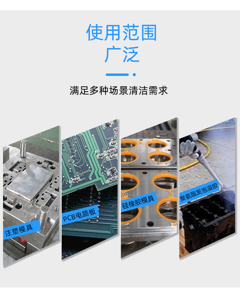 适用于电路板松香助焊剂、清洗各类油污残胶三防漆,锡膏网印板清洗,电路板翻新,治具清洗,钢网清洗,各类注塑/机加工塑橡胶制品披锋毛边去除、喷油前除尘、 家电行业发泡溢胶清洗,3C行业纳米注塑手机中框/电脑/手表中框去毛刺披锋,cnc设备刀具降温,干冰设备保养,食品行业高温炉清洗,印刷行业去油墨等